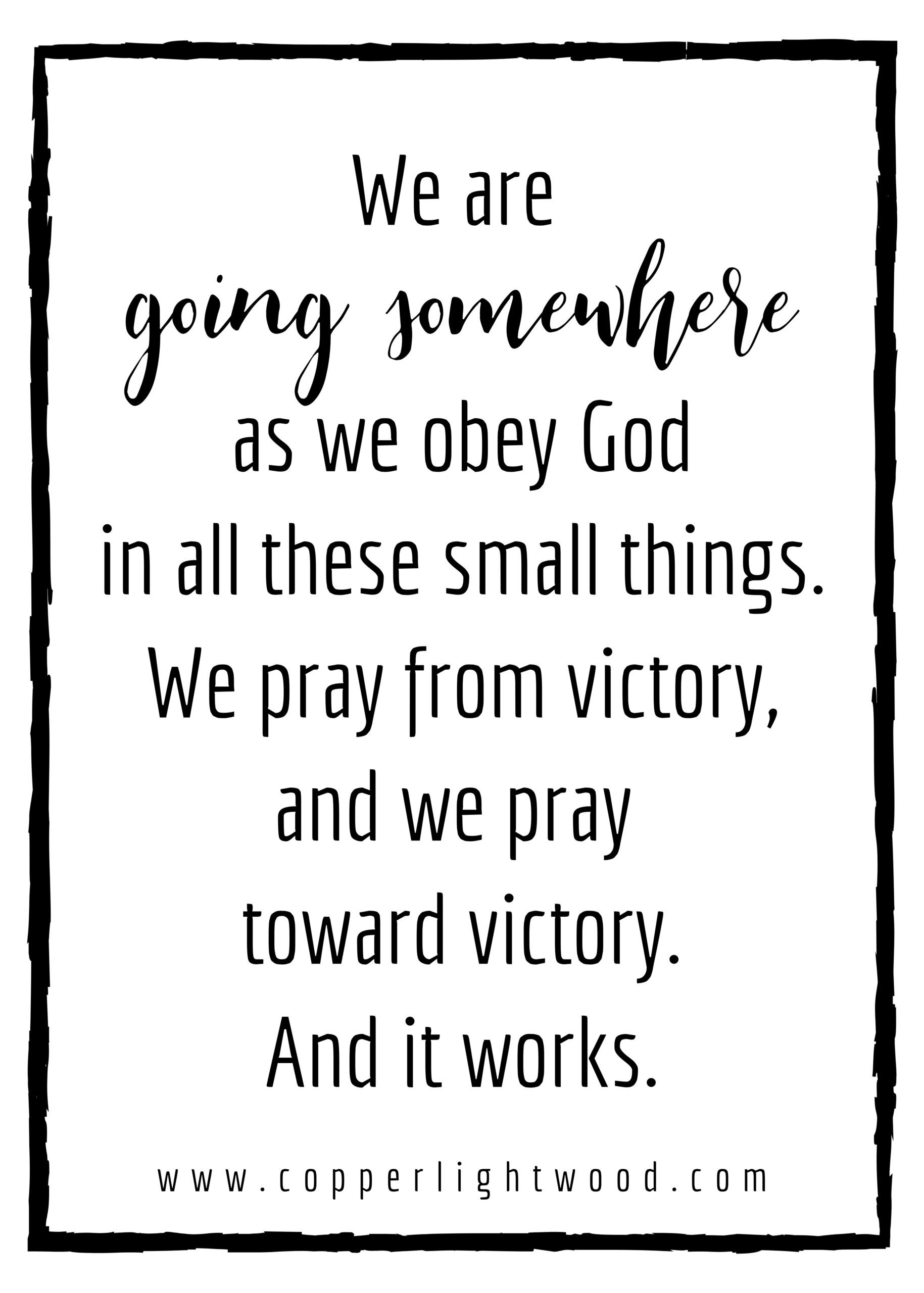 We pray from victory, and we pray toward victory. And it works.